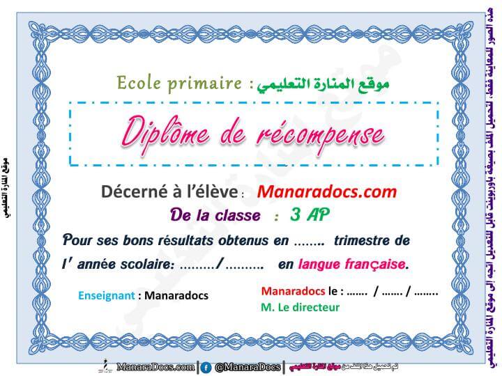 شهادات شكر و تقدير و شهادات تكريم و شهادات امتياز ة تهنئة باللغة الفرنسية بصيغة باوربوينت قابل للتعديل Word