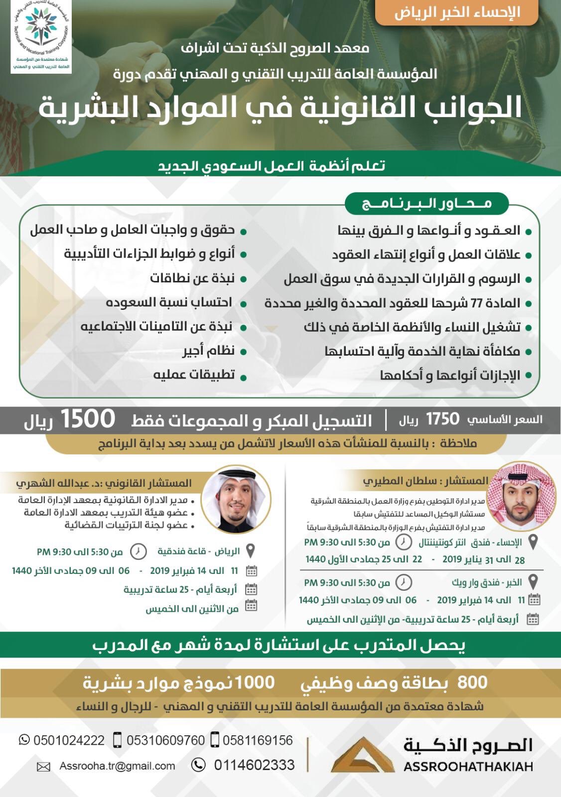 مدينة الخبر On Twitter مع د عبدالله الشهري مستشار سلطان المطيري دورة الجوانب القانونية في الموارد البشرية نظام العمل السعودي الجديد نسبة السعودة الاجازات القرارات الجديدة في سوق العمل التأمينات الاجتماعية الخبر الرياض الاثنين 11فبراير للاستفسار